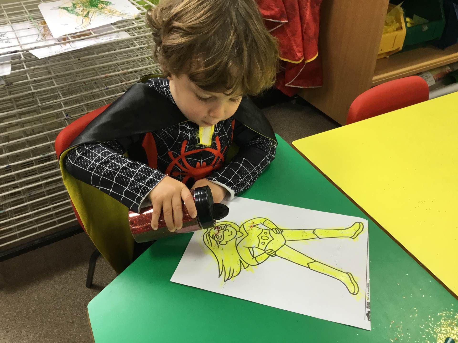 This half term ended with Superhero week. They made cuffs, a ‘shape’ themed cape, stick puppets, completed an obstacle course and learned a superhero song. They also did lots of Maths superhero challenges as well as a shape mission to find four sided shapes. Their learning was shared in their very first whole school sharing assembly.