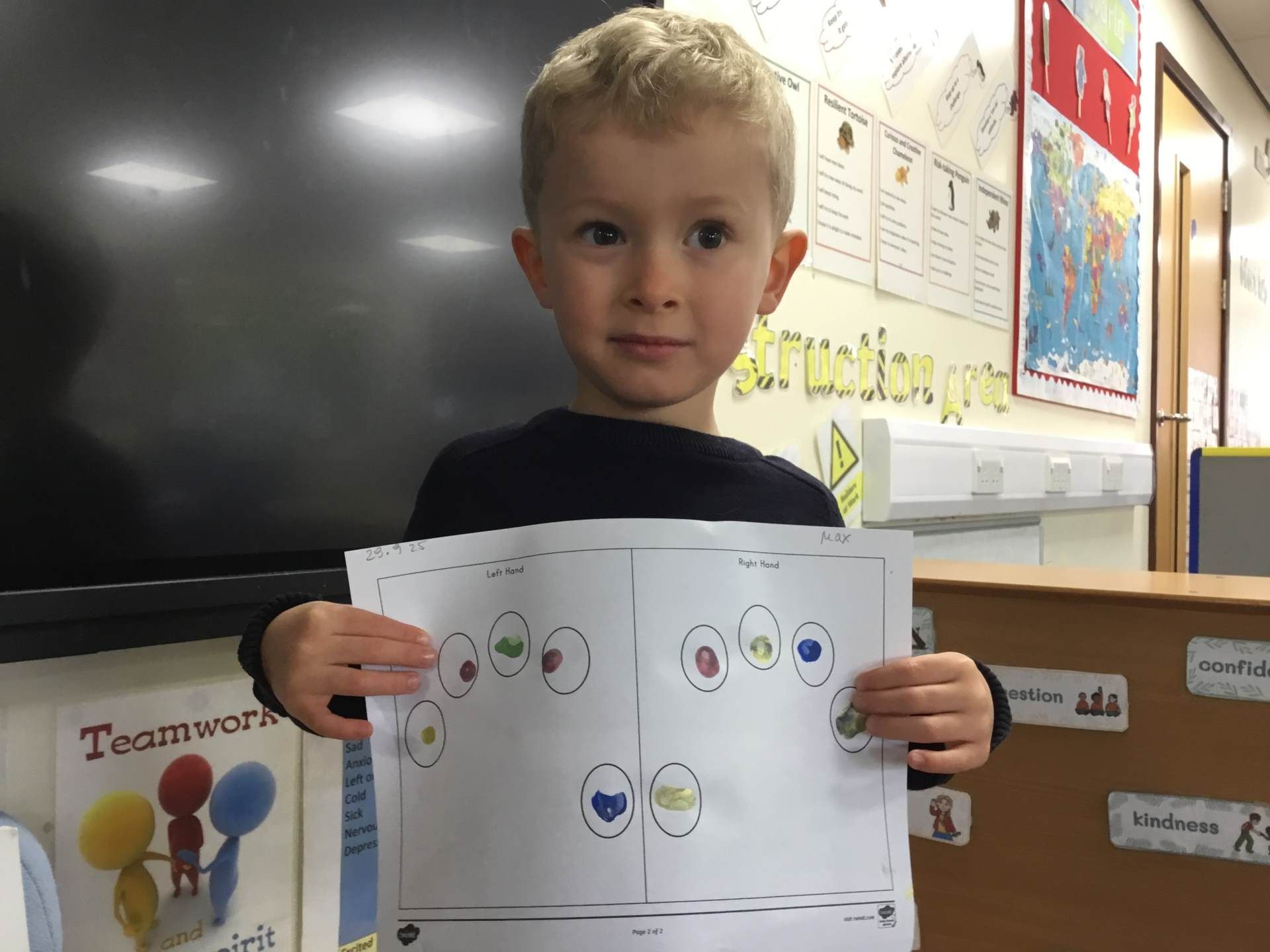 Our overarching topic for Autumn is All About Me. One activity included looking at what makes them unique, such as the different patterns on their fingertips. All the children looked at theirs using a magnifying glass, then printed their own in various ways.