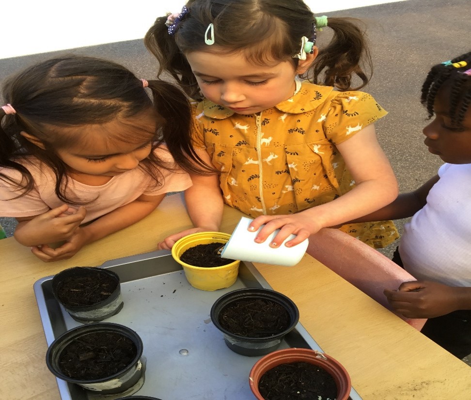 Nursery planted French beans, potatoes and sunflowers and learned about plant life cycles.