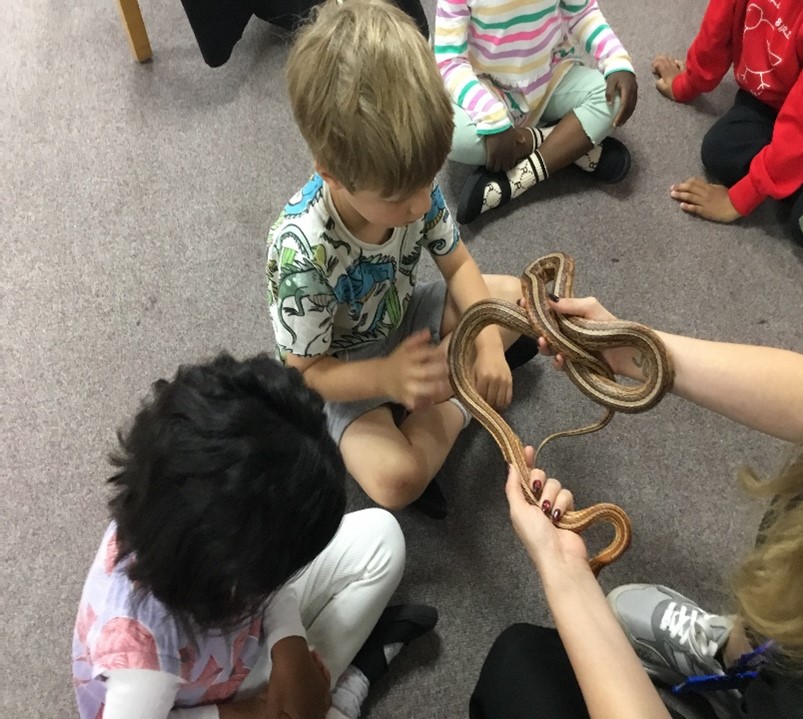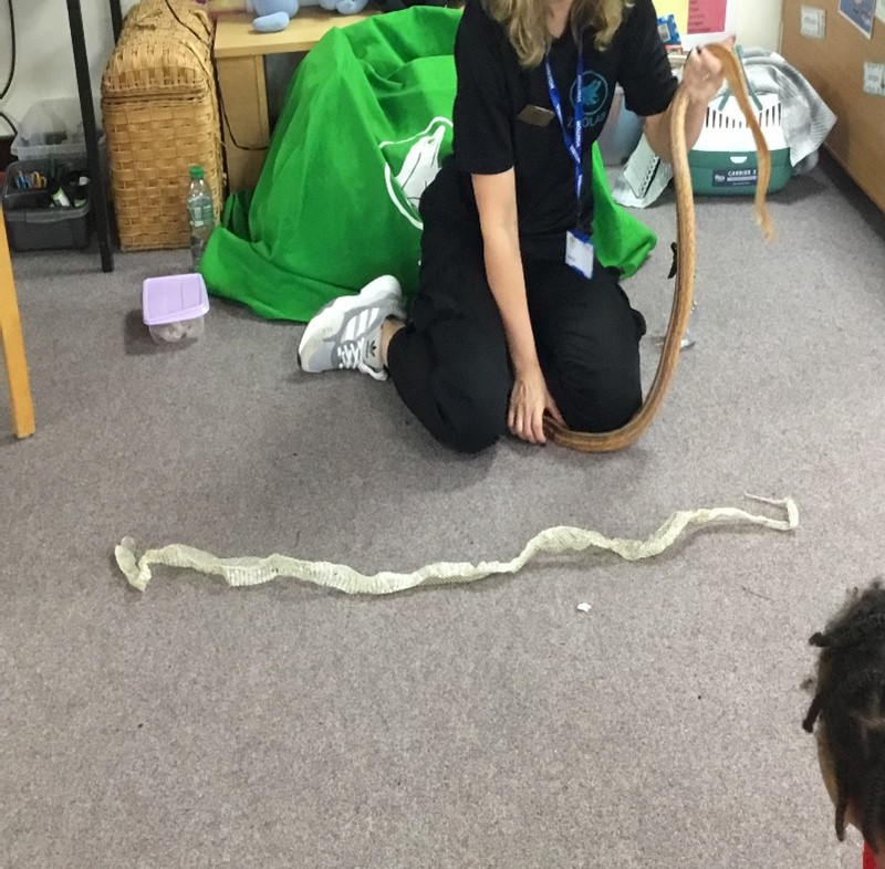 We had a workshop in which the children got to handle, stroke or observe lots of animals such as a tarantula, a gecko, a gerbil, a frog, a millipede and a snake. They learned many interesting facts about the animals and their life cycles.