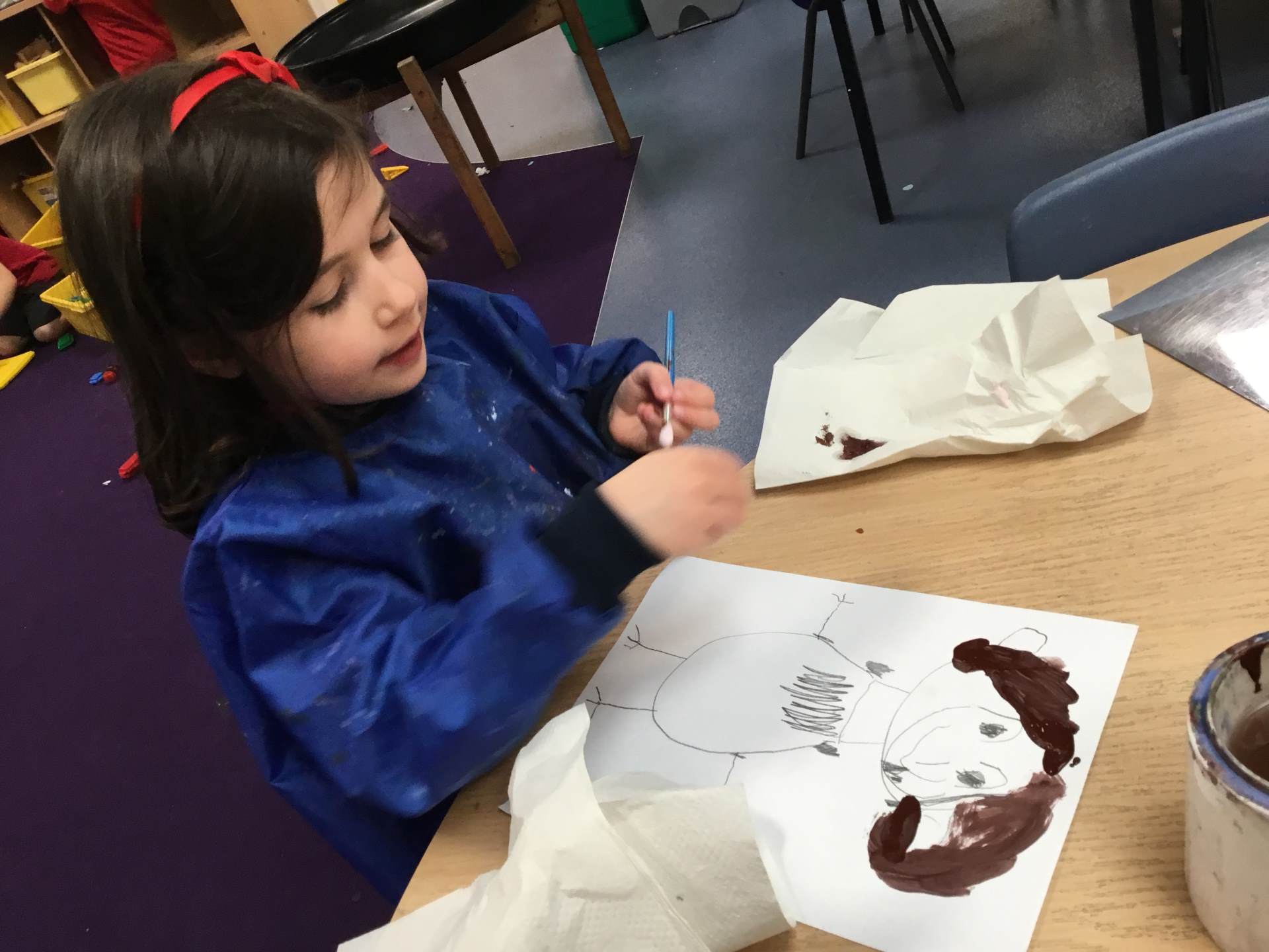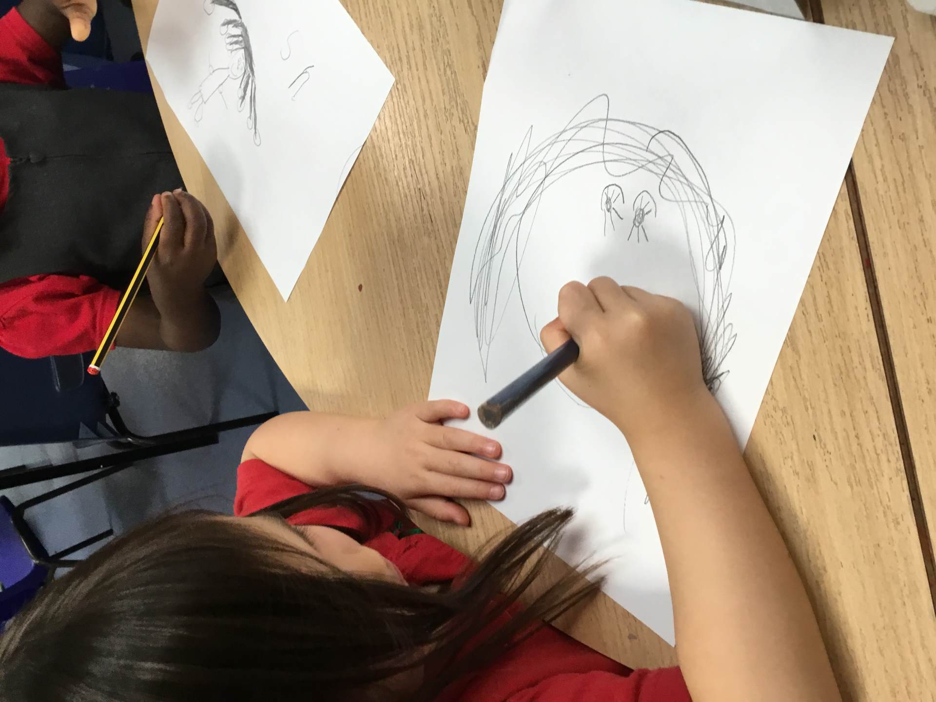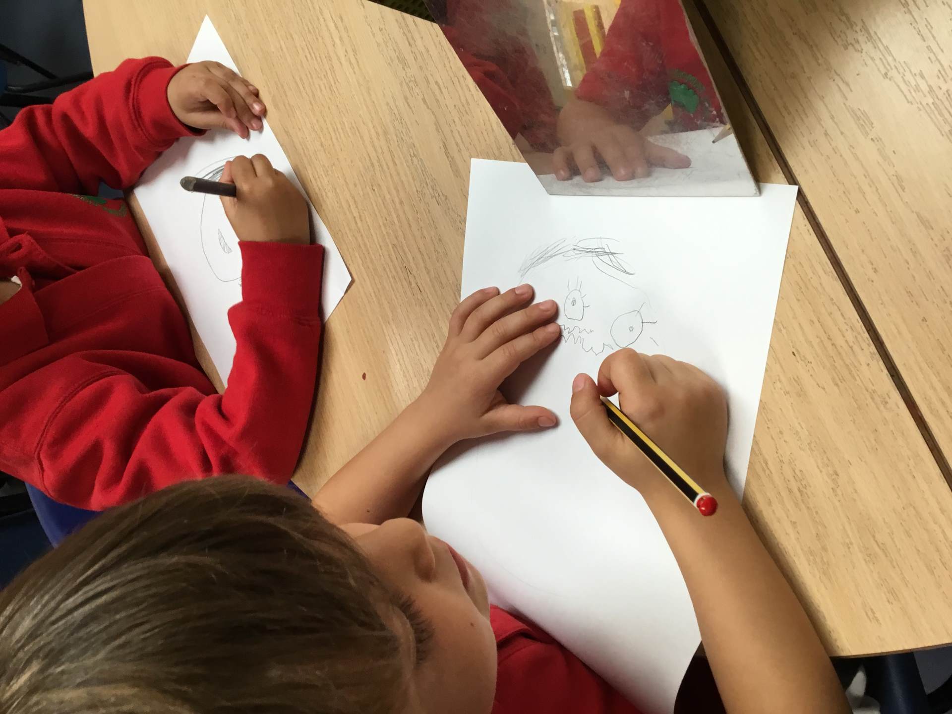 During our art lessons, we explored how artists create self portraits and the different techniques they use to show expression and detail. We used mirrors to carefully observe our features and draw self-portraits, then added colour and texture by painting over our drawings. |