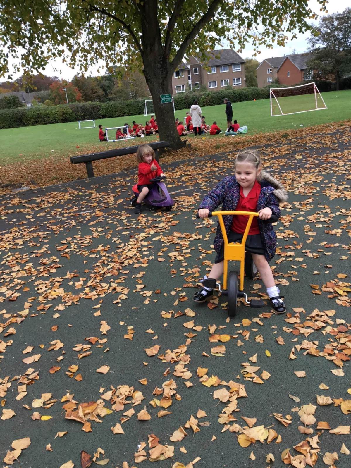 While playing outside, we also observed how the season of autumn changed the leaves and the world around us, noticing the different colours, textures, and sounds in nature.
