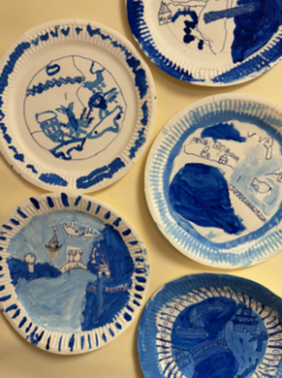 In art, we have been learning about art from other cultures. Our work has included Aboriginal dot paintings, mehndi designs and Chinese blue willow pattern plates.