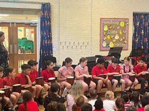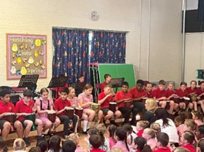 In June we shared our djembe drumming with the whole school, parents and carers in musical sharing assembly. We showed our new skills and knowledge and had great control of the rhythm.