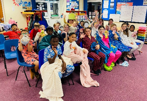As part of our Science learning about Earth and space, we held the ‘Great Space Sleepover’. The children enjoyed listening to some space stories, going on a star walk, watching a space movie (with hot chocolate and popcorn!) and then snuggling down to sleep in the school hall! Although we were unlucky with cloudy skies, that didn’t dim the excitement of spotting constellations on the ipads!