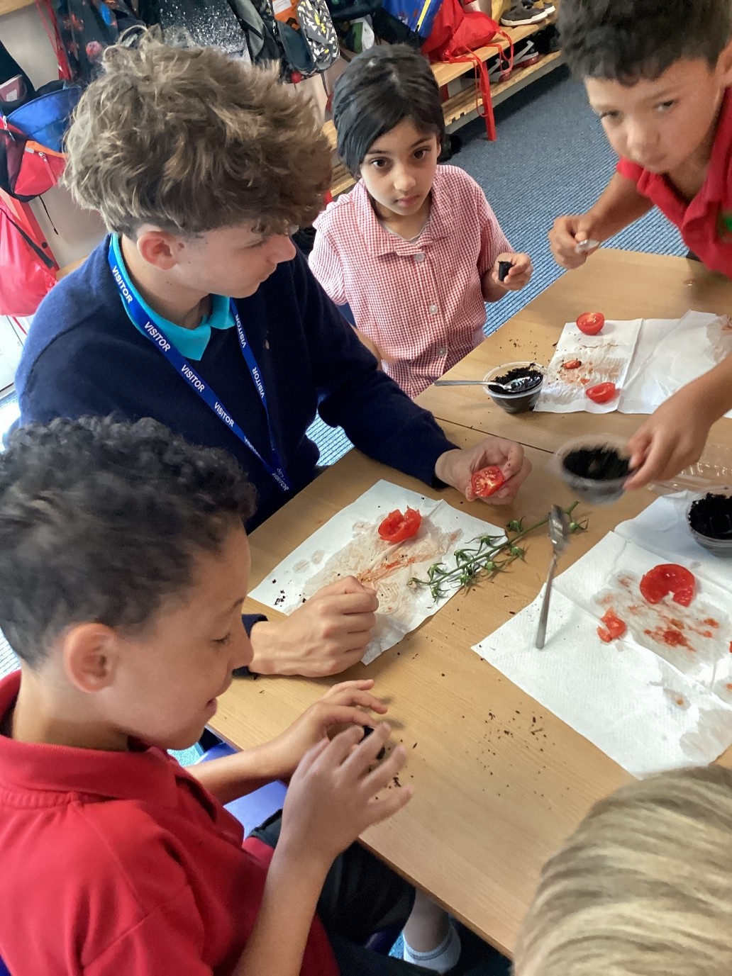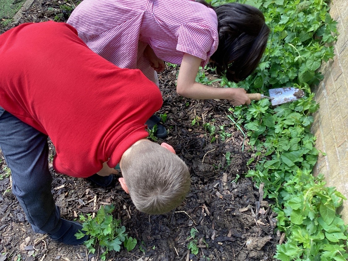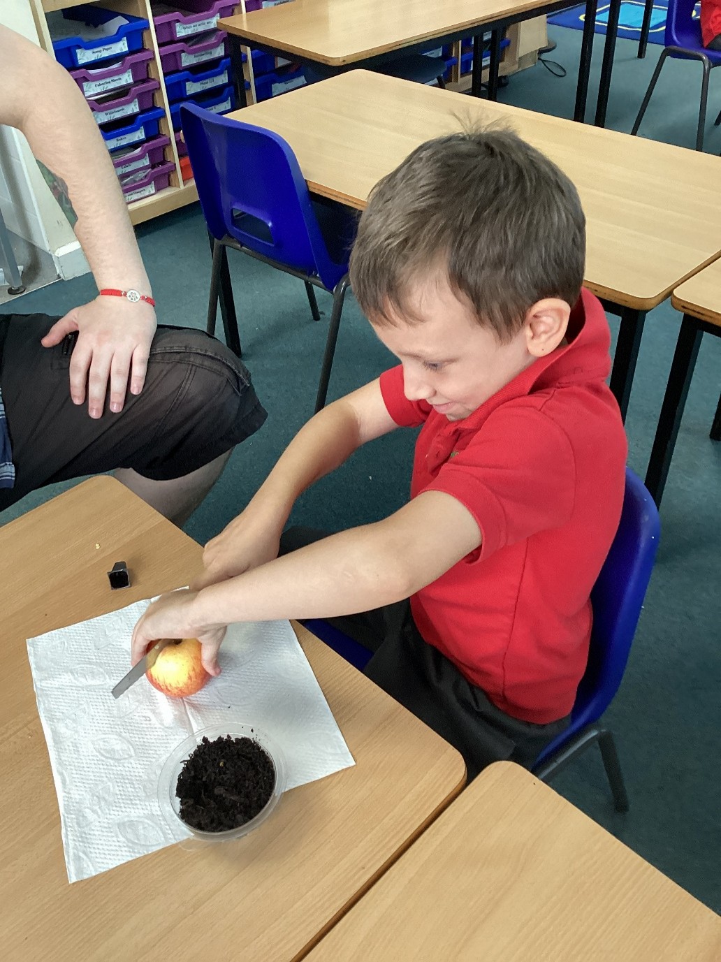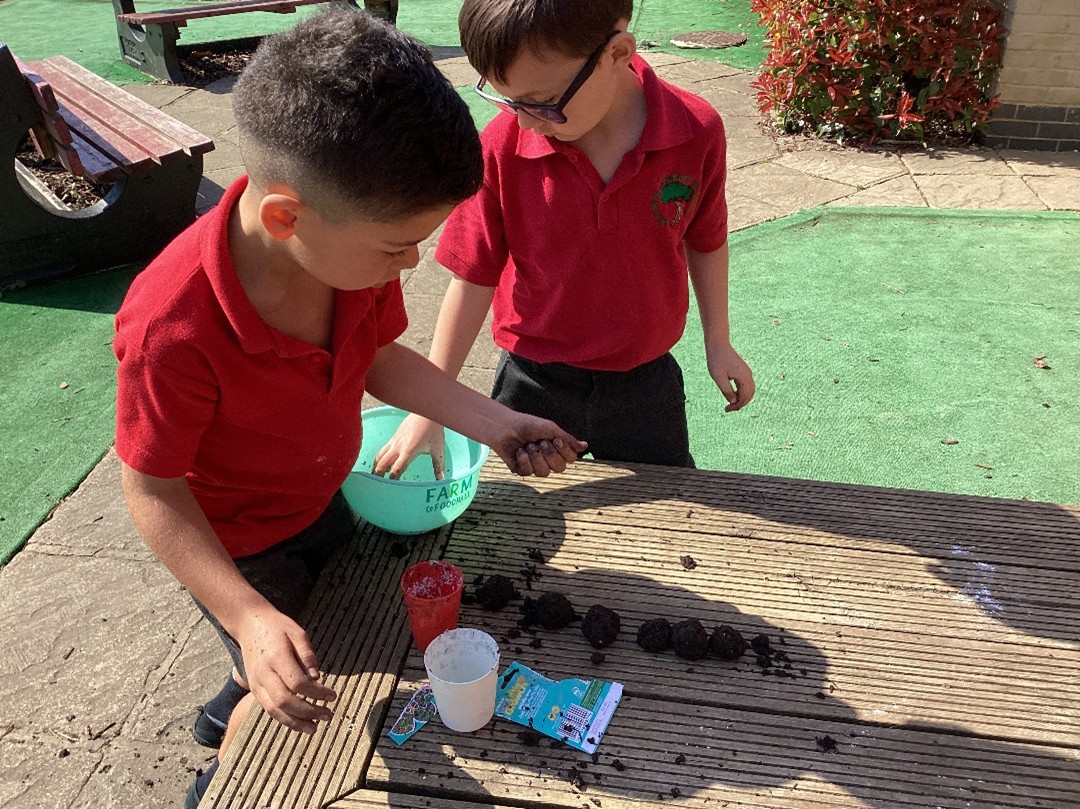 In our plants topic in science, Year 2 have learnt about the main parts of a plant and its flower, different kinds of plants and seeds and how they grow and survive. They made flower bombs, planted them and waited patiently for them to grow. They also cut fruits to find the seeds and then planted them.